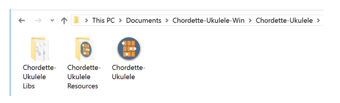 The zip file will be extracted to the destination you chose. There will be a folder named Chordette-[Instrument}-Win. Open the folder to view the contents.