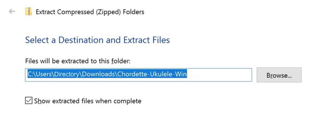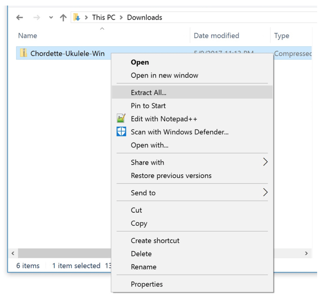 Chordette is a chord library app that can be used as a stand-alone application, or in Chordette for Windows is distributed as a zip file named Chordette-[Instrument}-Win. After you download the zip file, right-click on the file and select Extract All...