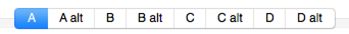 Type the keystroke that is displayed in Chordette for Ukulele for the desired chord. For example, "A" will enter an A chord for Group A chords. Typing "Q" will enter a Cmaj7 chord. For chords that use the alt key, do the following: