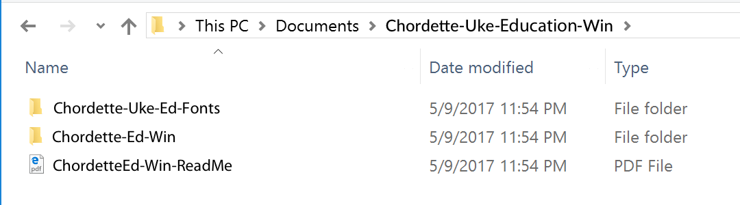 The zip file will be extracted to the destination you chose. There will be a folder named Chordette-Ed-Win. Open the folder to view the contents.