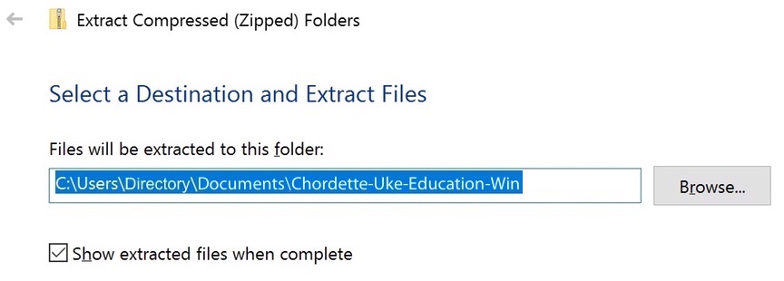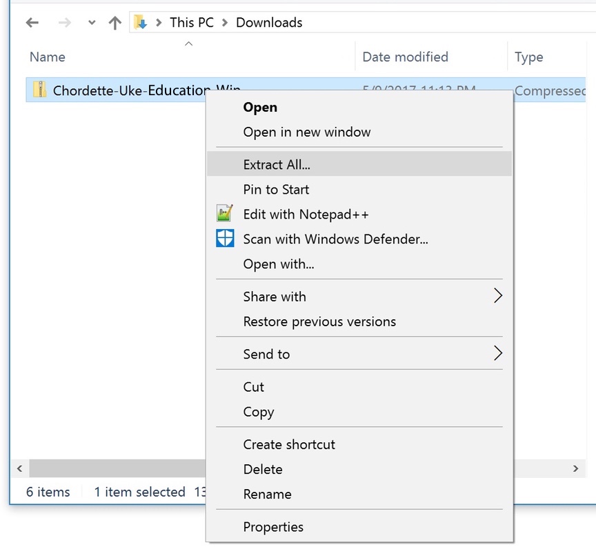 Chordette for Education for Windows is distributed as a zip file named Chordette- Uke-Education-Win. After you download the zip file, right-click on the file and select Extract All...