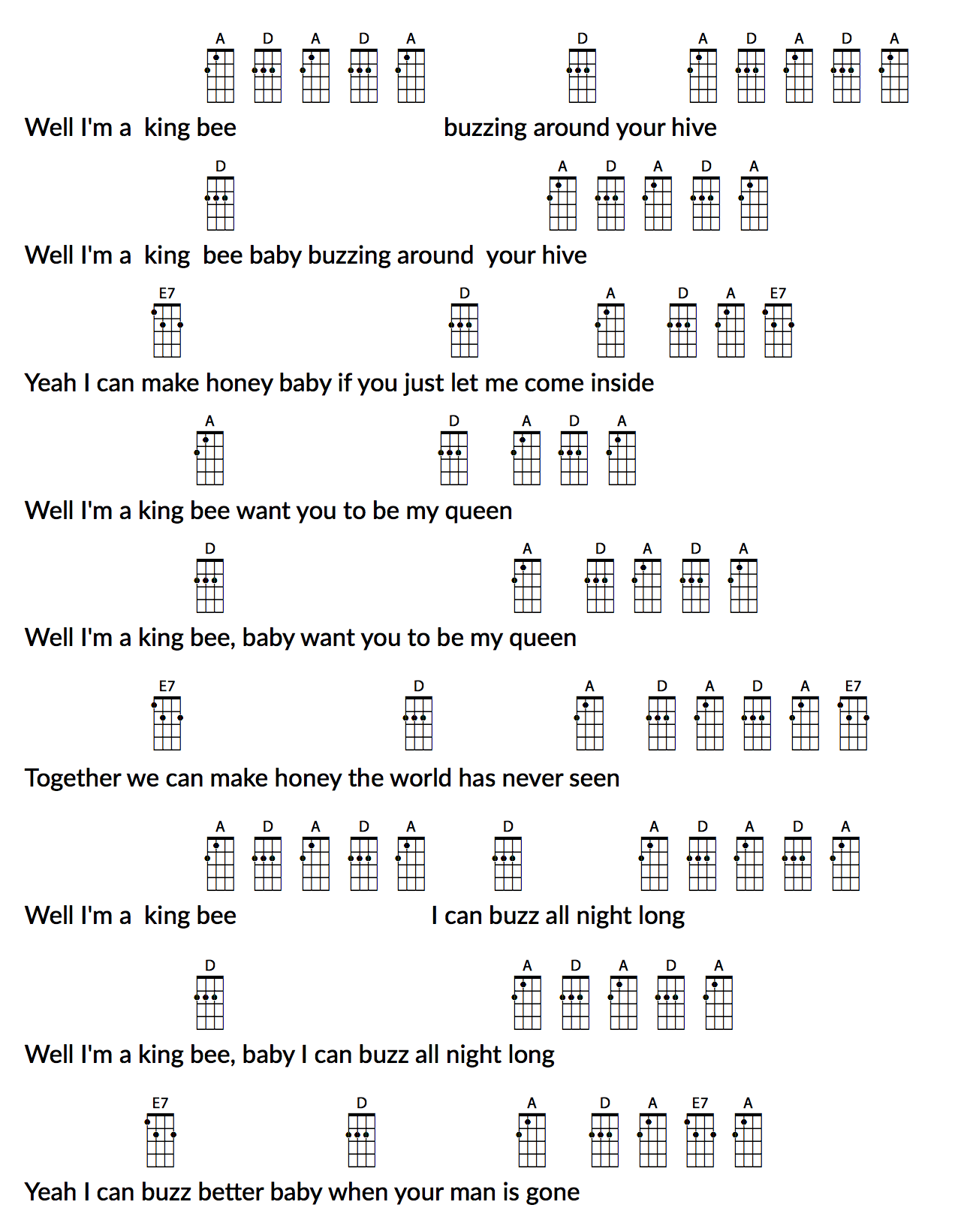 | "I'm a King Bee" is a swamp blues song that has been performed and recorded by numerous blues and other artists. Written by Slim Harpo (using his real name, James Moore), the song was recorded in March 1957. In 2008, Slim Harpo's "I'm a King Bee" received a Grammy Hall of Fame Award, which "honor recordings of lasting qualitative or historical significance". The Rolling Stones recorded "I'm a King Bee" for their 1964 debut album. The song has an irregular number of bars (15-bar blues, as opposed to the standard 12 bars). -- Wikipedia | |||