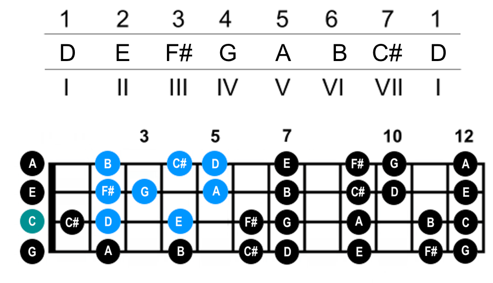 | D | 1-3-5 | D-F#-A |